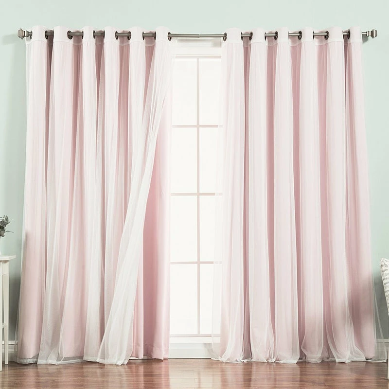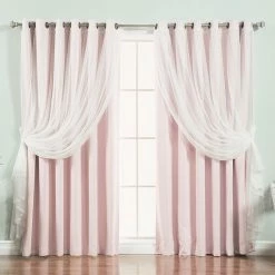 Coupon β Best Home Fashion Gathered Tulle Sheer And Blackout 4-Piece Curtain Set, Pink, 96″ π
