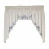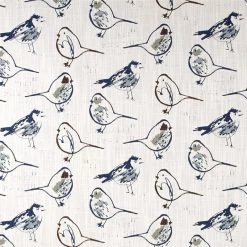 Bird Toile is a contemporary take on a chinoiserie featuring minimalist earth-tone birds that face in opposite directions. The fabric is a cotton slub canvas in soft navy, spa blue, brown, khaki, and white. Includes one scallop valance, lined. May be used alone or as a filler with the empress swag valance.