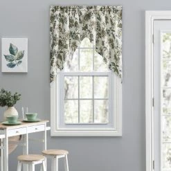 Make a colorful, stylish statement in any room with this rich and beautiful floral. The tailored swag valance is made with 50-percent polyester/50-percent cotton duck fabric that creates a smooth draping effect, soft texture and easy maintenance. Each swag piece is constructed with a 1.5-inch header and 1.5-inch rod pocket. Sold in pairs (2 pieces) width measures 56-inches (both 28-inch panels together), while length measures 36-inches from top stitch down. For wider windows simply add the coordinating tailored valance to the look. Easy care machine washable.
