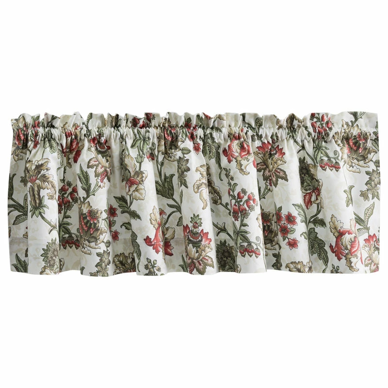 Make a colorful, stylish statement in any room with this rich and beautiful floral. Made with 50-percent polyester/50-percent cotton duck fabric that creates a smooth draping effect, soft texture and easy maintenance. The tailored valance is constructed with a 1.5-inch header and 1.5-inch rod pocket. Width is measured at 58-inches, while length measures 15-inches. For wider windows simply add multiply valances together. Easy care machine washable.