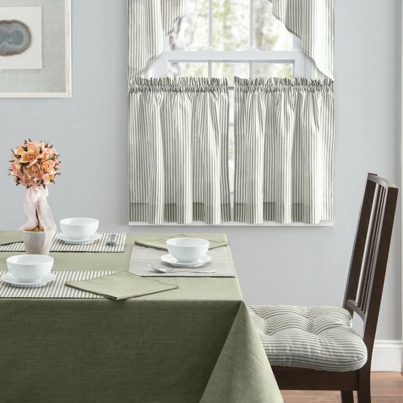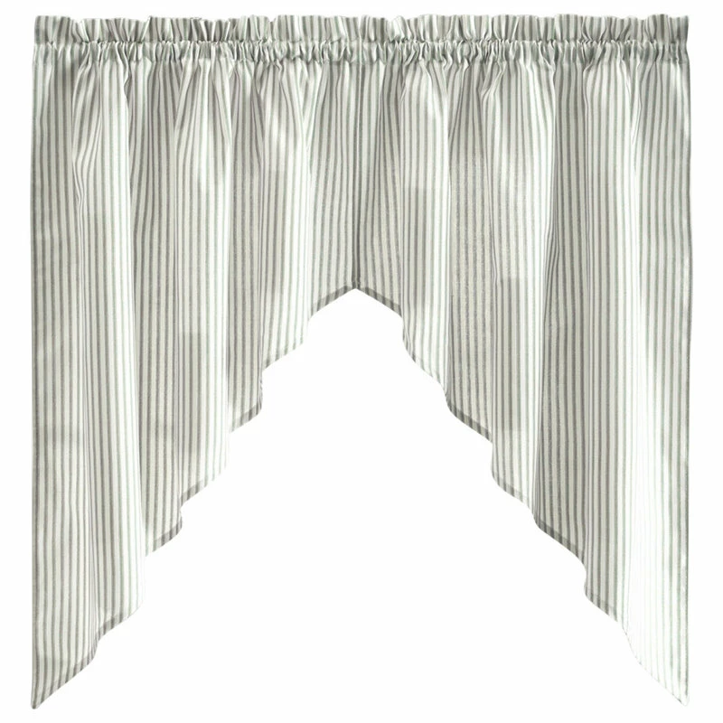Casual, classic stripes will harmonize all of the elements of your room, bringing style and character. The tailored swag valance is made with 50-percent polyester/50-percent cotton duck fabric that creates a smooth draping effect, soft texture and easy maintenance. Each swag piece is constructed with a 1.5-inch header and 1.5-inch rod pocket. Sold in pairs (2 pieces) width measures 56-inches (both 28-inch panels together), while length measures 36-inches from top stitch down. For wider windows simply add the coordinating tailored valance to the look. Easy care machine washable.