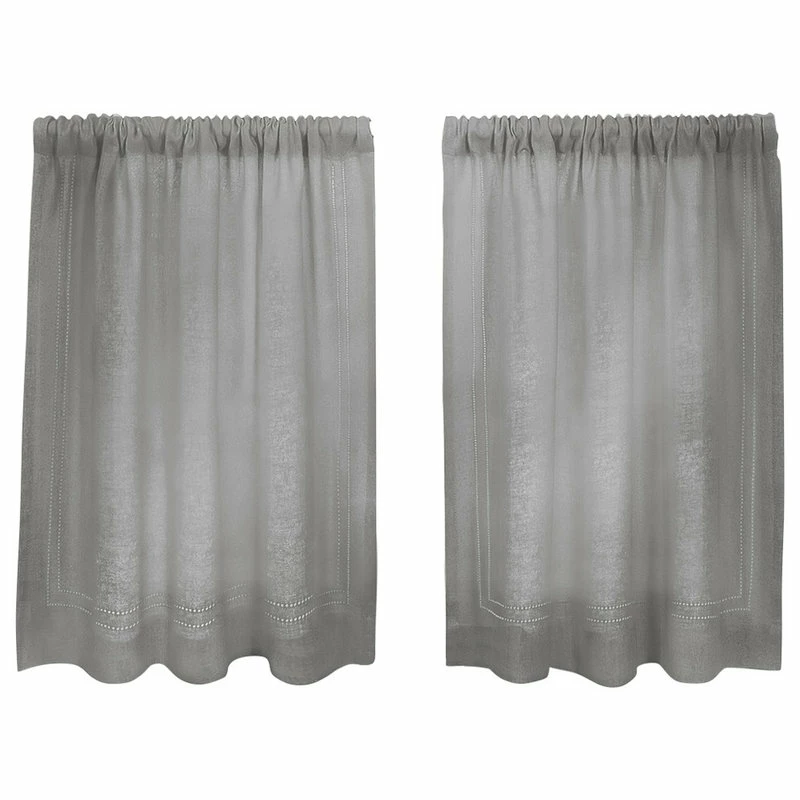Our Set of 2 Hemstitched rod pocket window cafe kitchen curtain tier featuring a crisp, classic design, the inviting color is simply refreshing. Rod-pocket styling fits rods up to 1.5 in. Double hem stitching detail. Tier sold in set of 2. Together set measures 60 inches across. Easy-care fabric. Linen/Rayon. Machine washable. Coordinating valance available and sold separately.
