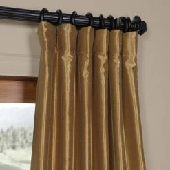 Our Vintage Textured Faux Silk curtains & drapes have a slight sheen that mimics the finest texture of silk dupioni. These curtains bring the look of luxury without the cost or high-maintenance care. Built-in are two header designs within a single panel. The attached back tabs for a formal pleated look and a traditional pole pocket. As a general rule, for proper fullness panels should measure 2-3 times the width of your window/opening.