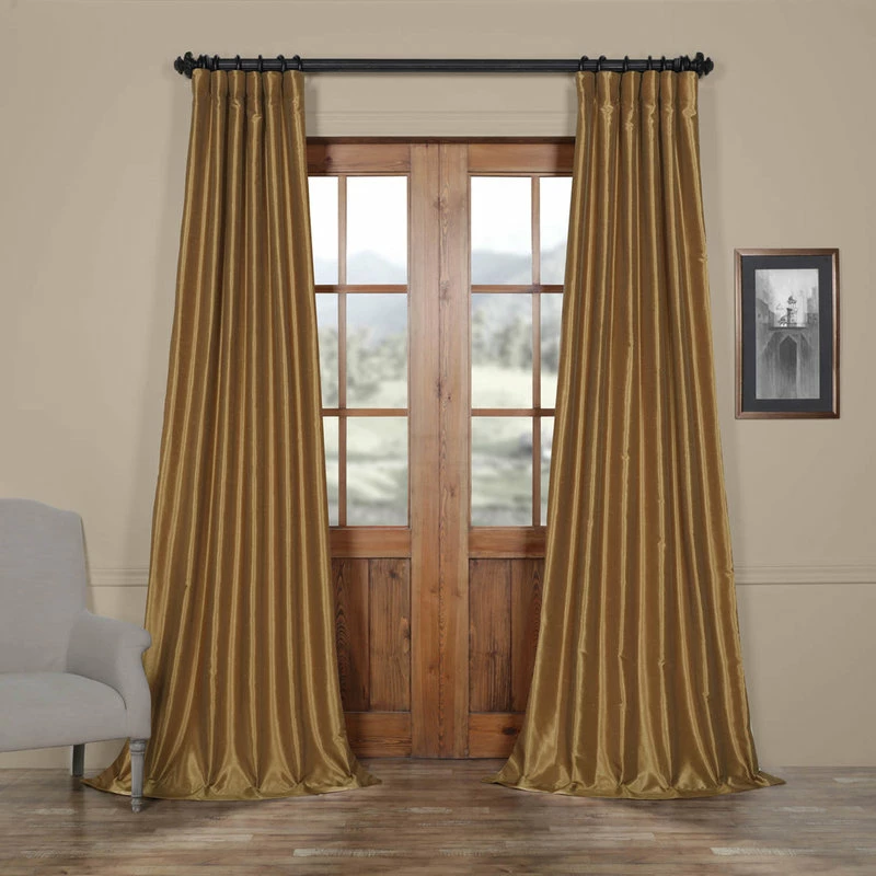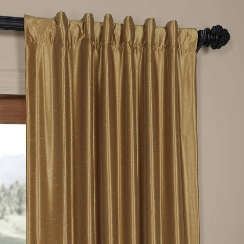 Our Vintage Textured Faux Silk curtains & drapes have a slight sheen that mimics the finest texture of silk dupioni. These curtains bring the look of luxury without the cost or high-maintenance care. Built-in are two header designs within a single panel. The attached back tabs for a formal pleated look and a traditional pole pocket. As a general rule, for proper fullness panels should measure 2-3 times the width of your window/opening.