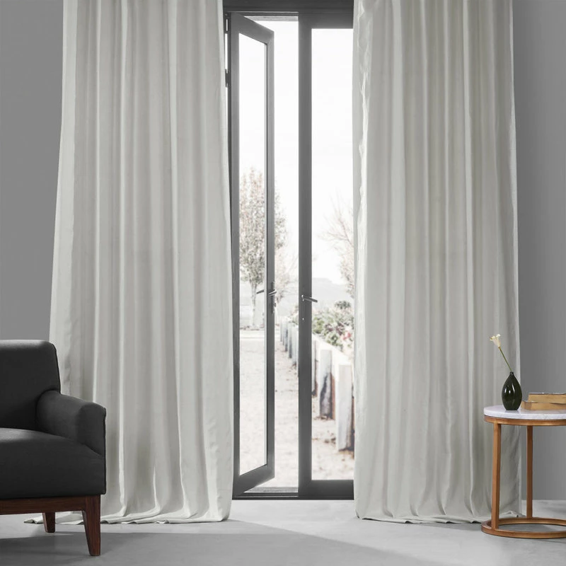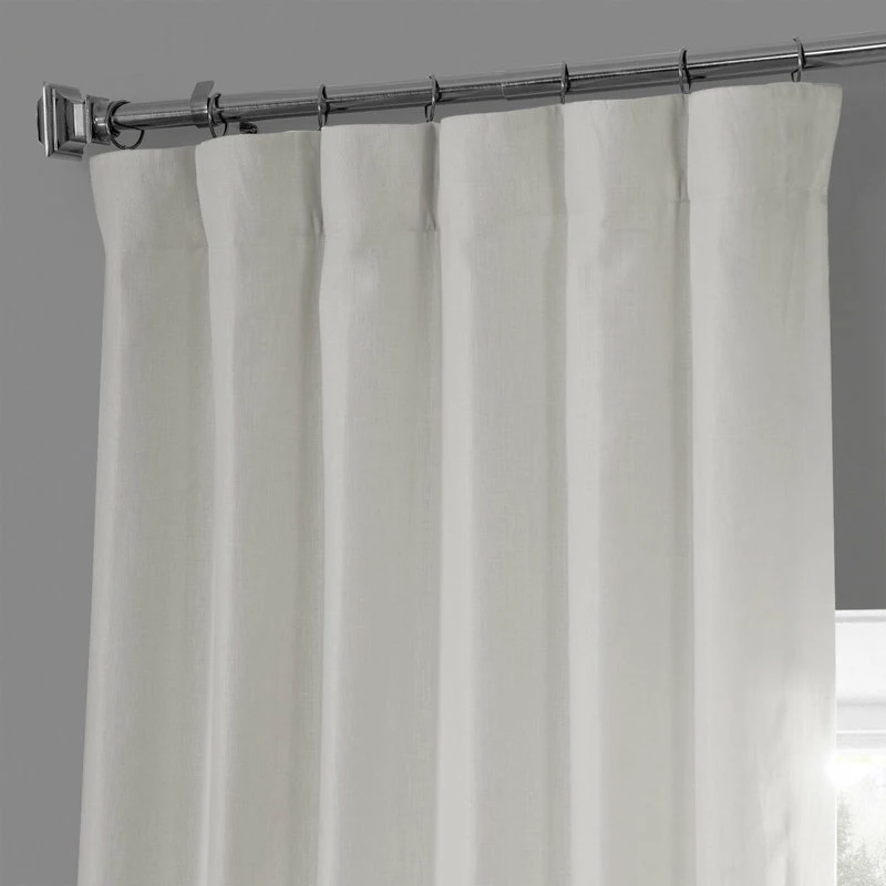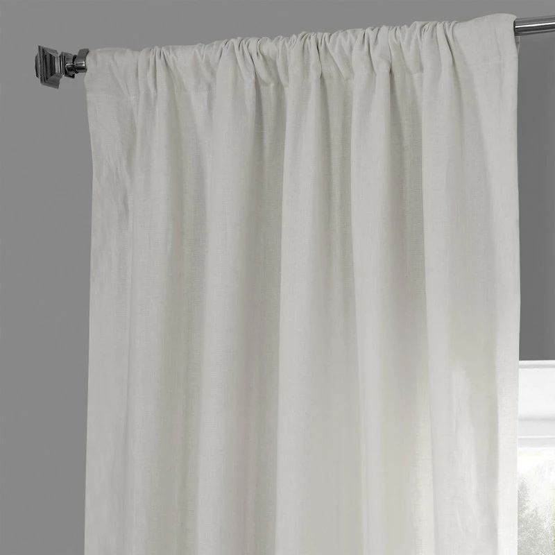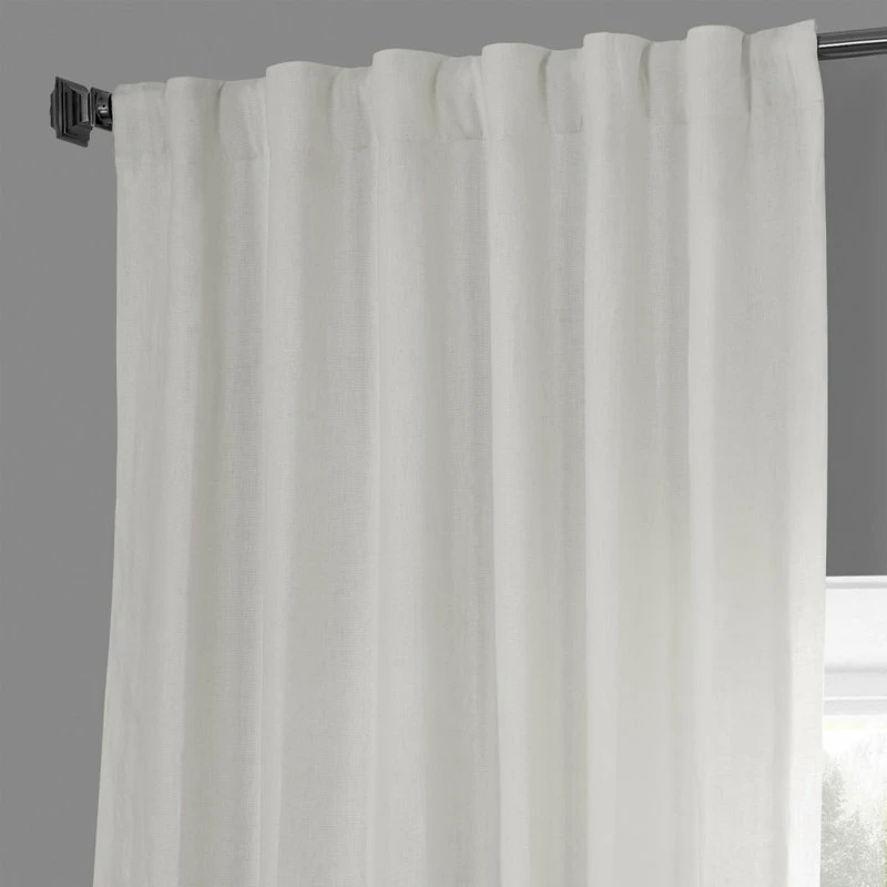 The classic French curtain is hard to top in term of sophistication. These drapes are perfect for any window and when you shop with Half Price Drapes you can count on nothing but the finest linens. When quality and affordability are your top priorities we are the company you want to shop with. These French curtains are fully lined for complete privacy and finished off with a weighted hem to ensure they’ll hang beautifully. These curtains have our most versatile header, a rod pocket with back tabs and hook belt. There is a 3″ pole pocket in the header and back tab loops that will accommodate up to a 1.5″ diameter curtain rod with no additional hardware. Additionally, these panels can be attached to curtain rings from clips or by running an S-shaped drapery pin through the back of the header and hanging the drapery pin through an eyelet on the rings. These curtains are sold with no hardware like rings or hooks. We try to provide the most accurate digital images possible. Color may appear slightly different from one screen to another based on differences in computer monitors, brightness, and other selected settings so there may be variations in color between the actual product and the way it appears online.
