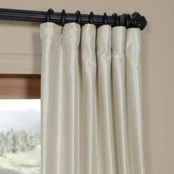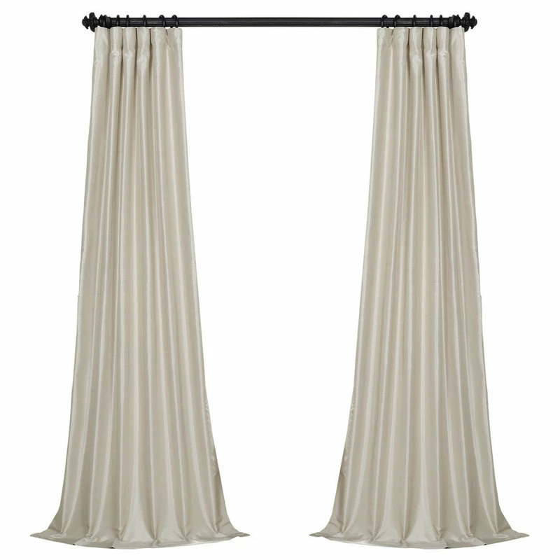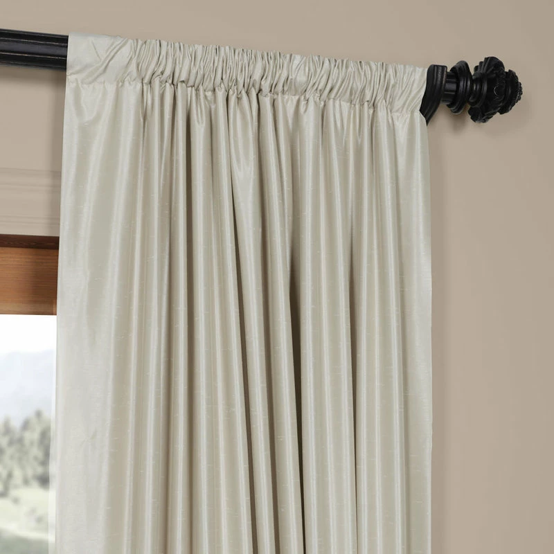 Our Vintage Textured Faux Silk curtains & drapes have a slight sheen that mimics the finest texture of silk dupioni. These curtains bring the look of luxury without the cost or high-maintenance care. Built-in are two header designs within a single panel. The attached back tabs for a formal pleated look and a traditional pole pocket. As a general rule, for proper fullness panels should measure 2-3 times the width of your window/opening.