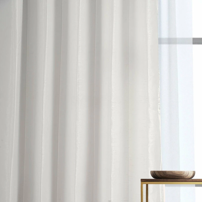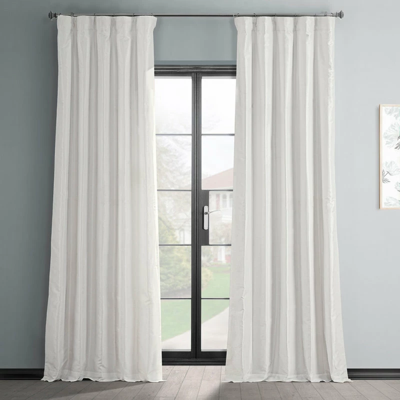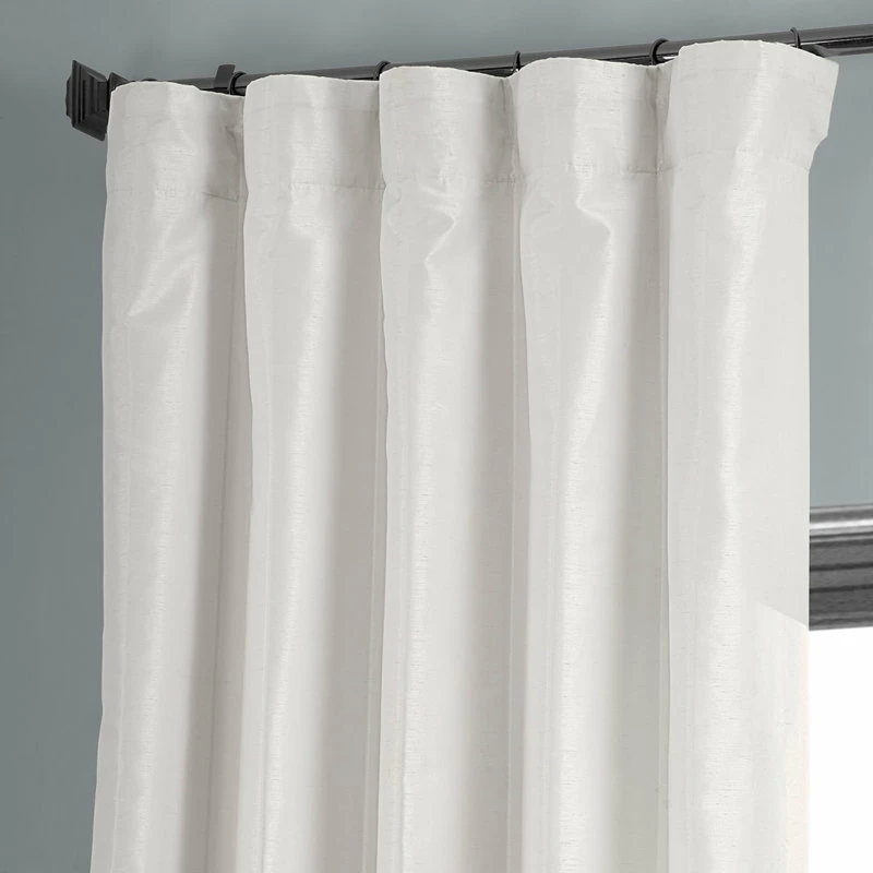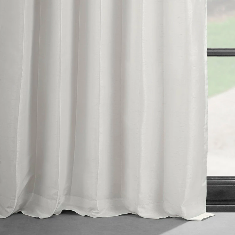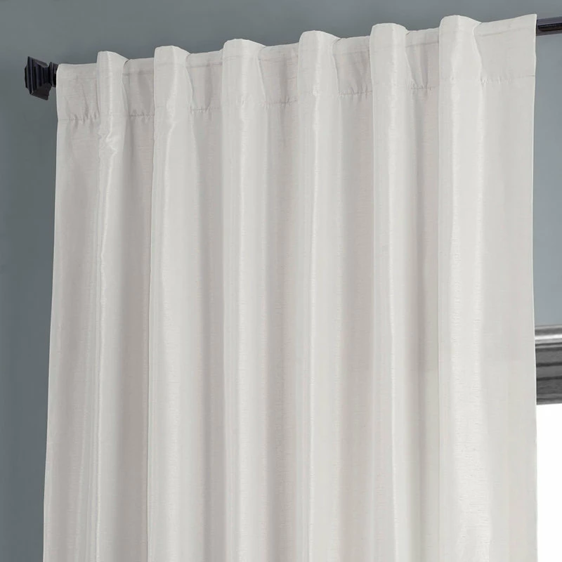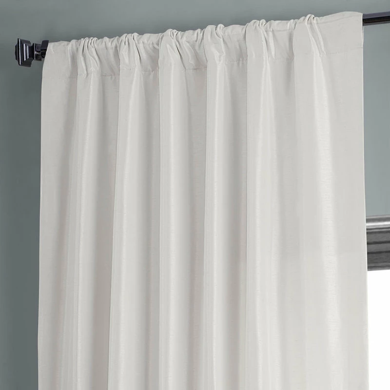Our Vintage Textured Faux Silk curtains & drapes have a slight sheen that mimics the finest texture of silk dupioni. These curtains bring the look of luxury without the cost or high-maintenance care. Built-in are two header designs within a single panel. The attached back tabs for a formal pleated look and a traditional pole pocket. As a general rule, for proper fullness panels should measure 2-3 times the width of your window/opening.