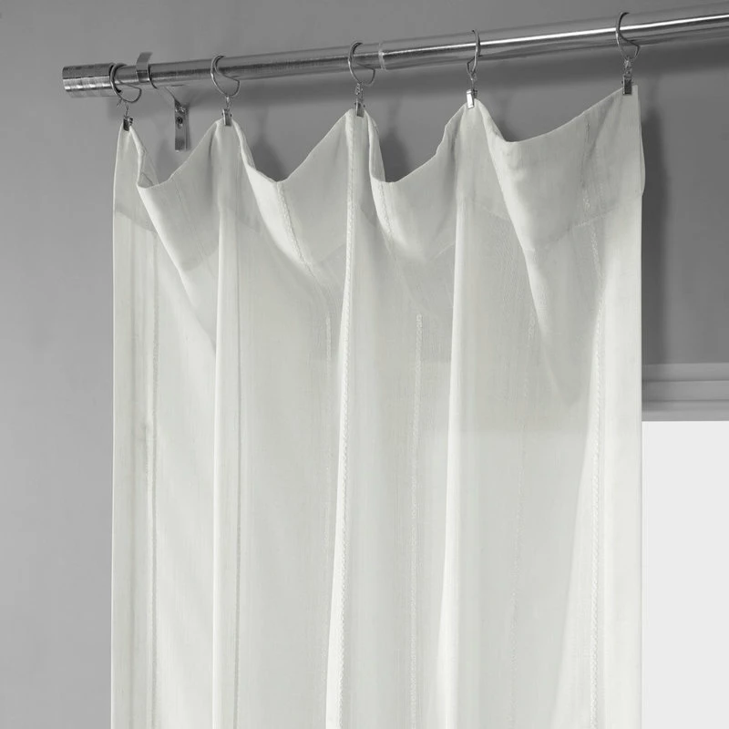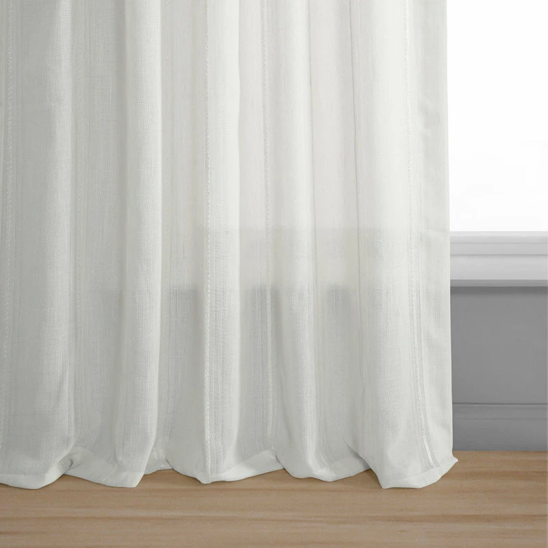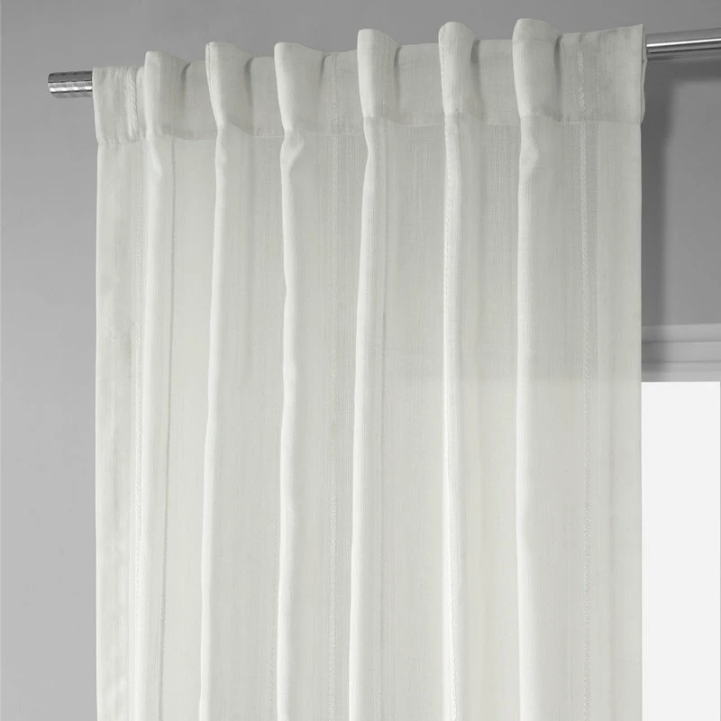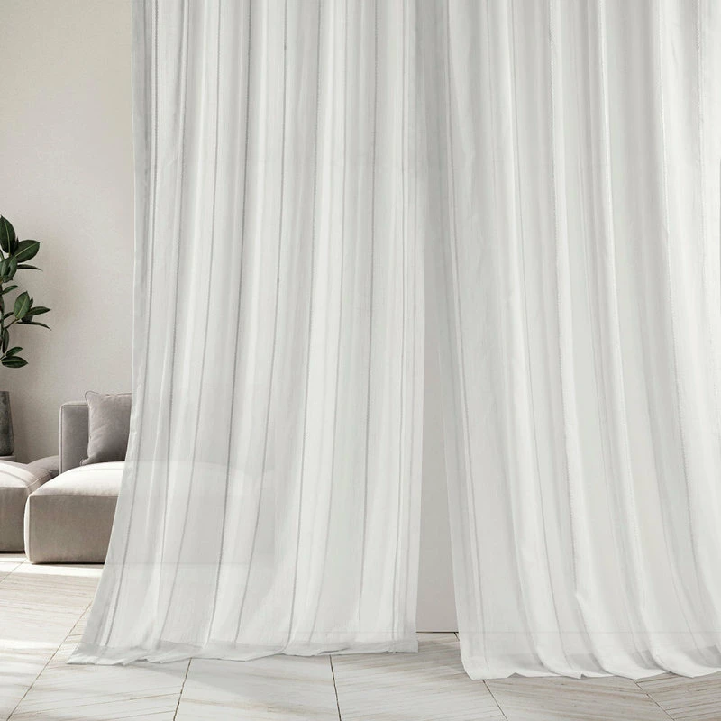 Rich in texture these Linen Blend Stripe Curtains offer a beautifully diffused light. Each with stripe woven through them will make these drapes a unique, stylish addition to any room. As a general rule, for proper fullness panels should measure 2-3 times the width of your window/opening.