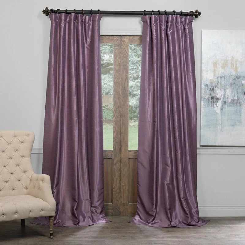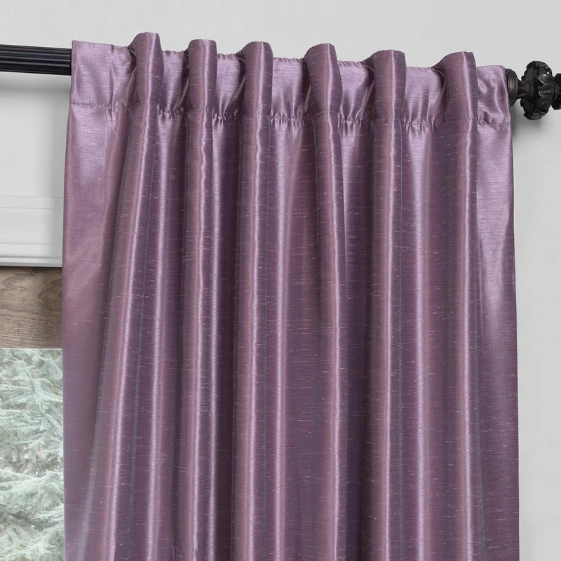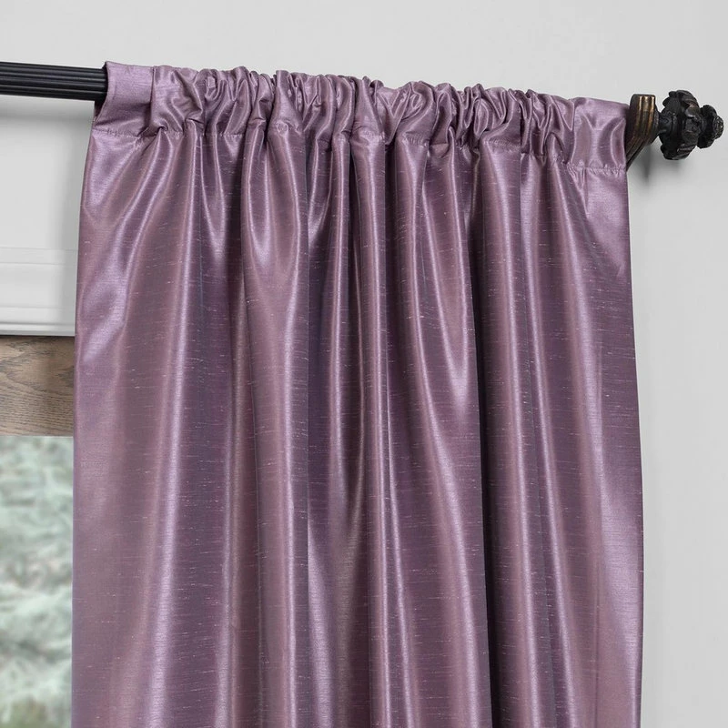 The Textured FauxDupioni Silk Blackout Single Panel Curtain frames your window in texture and softness. The slight sheen mimics the finest texture of silk dupioni, while the Pole Pocket header adds a contemporary look.