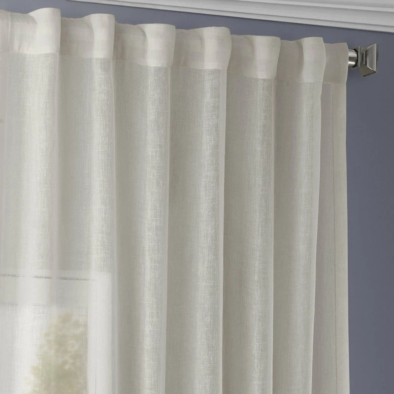 You will instantly fall in love with the Gardenia FauxLinen Sheer Linen Panel. The refined look of these sheer drapes blends seamlessly with any color scheme or decor, from classic to modern. They create a warm atmosphere with beautiful light diffusion perfect to soften any room. For proper fullness panels should measure 2-3 times the width of your window/opening. Bring your home design to its fullest and most stylish potential with the Gardenia FauxLinen Sheer Panels.