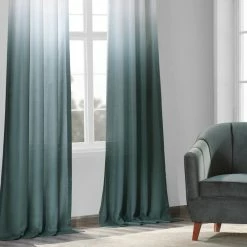 Our FauxLinen Semi Sheer Ombre Single Panel Curtain is the contemporary touch you have been looking for. Woven to look and feel like linen, they have a lovely depth of color at the bottom that gradually lightens at the top to a soft beige. These unlined curtain can be hung using a simple rod, or a rod and rings. Ombre Aqua starts as deep aqua at the bottom and lightens at the top to very pale aqua. These panels are Flippable! Our Ombres can be flipped around to go from light to dark or from dark to light! We have left the hem open on these versatile curtains so that you can decide for yourself how you want to hang them.