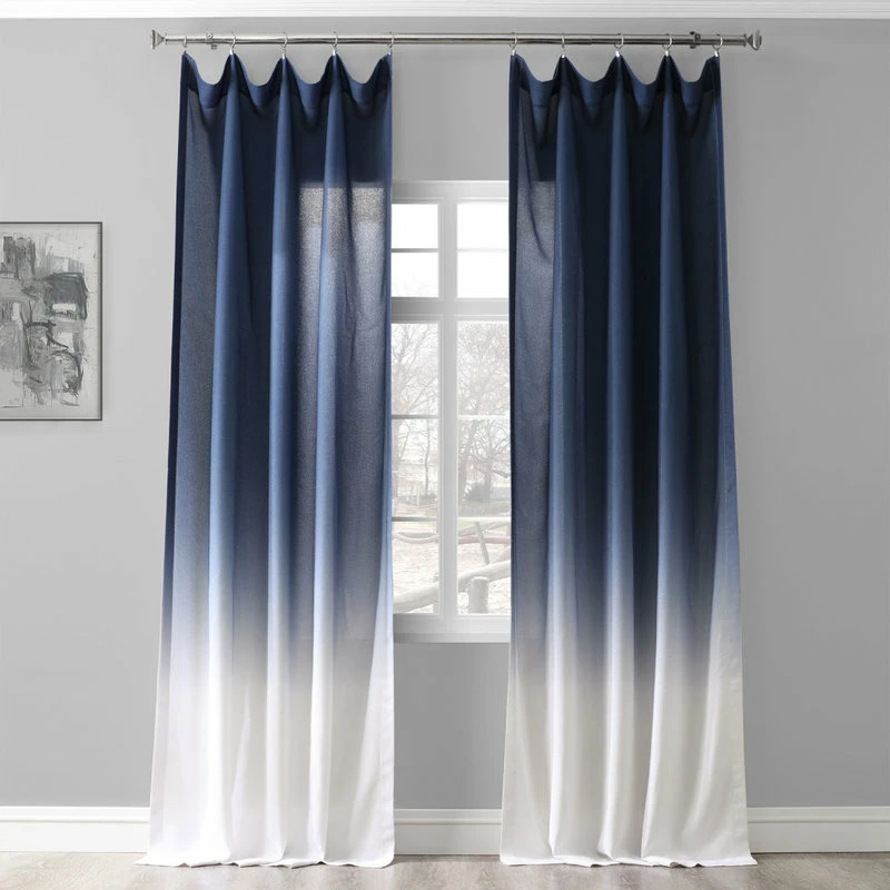 Our FauxLinen Semi Sheer Ombre Single Panel Curtain is the contemporary touch you have been looking for. Woven to look and feel like linen, they have a lovely depth of color at the bottom that gradually lightens at the top to a soft beige. These unlined curtain can be hung using a simple rod, or a rod and rings. Ombre Aqua starts as deep aqua at the bottom and lightens at the top to very pale aqua. These panels are Flippable! Our Ombres can be flipped around to go from light to dark or from dark to light! We have left the hem open on these versatile curtains so that you can decide for yourself how you want to hang them.