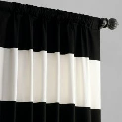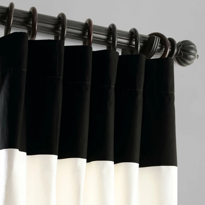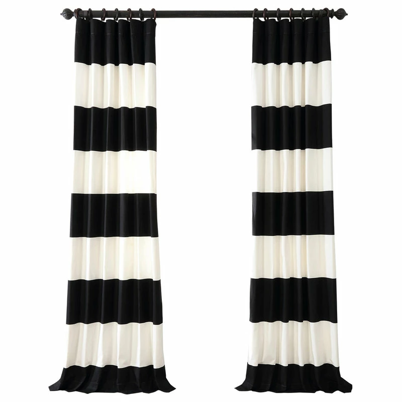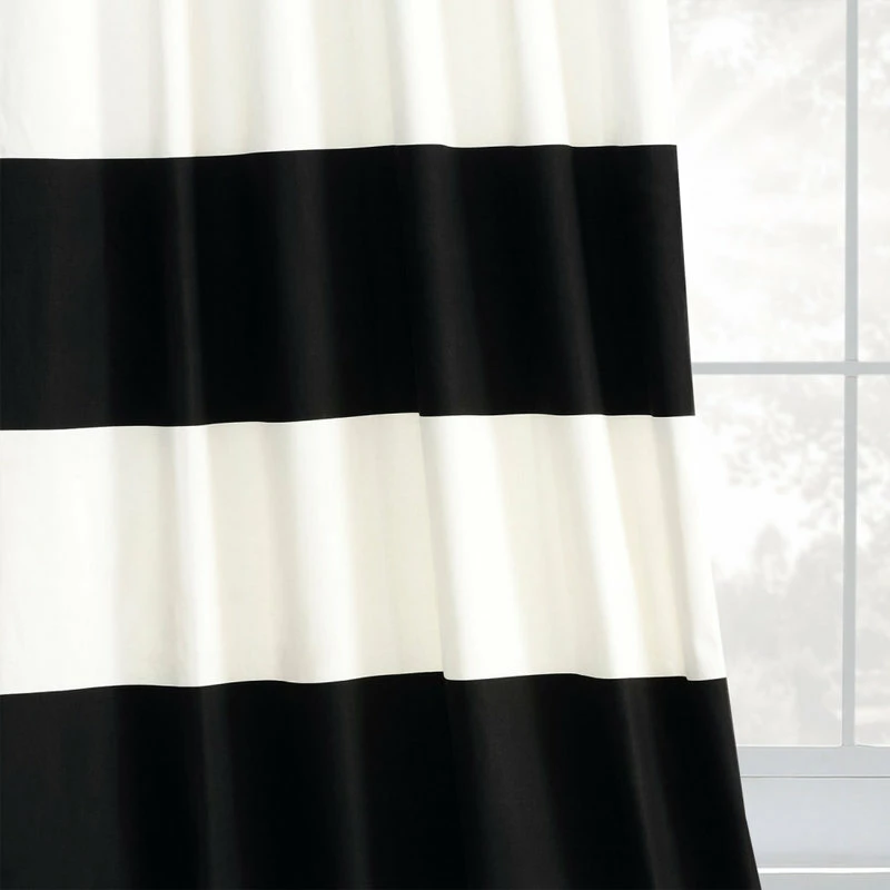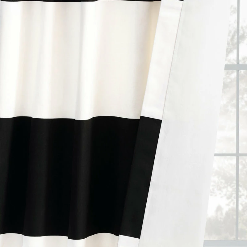 You will instantly fall in love with the OnyxBlack Off Stripe Cotton Panel. Try it in the play room for a fun touch that the kids will love and effortlessly cozy them along with a chic shag rug. For proper fullness panels should measure 2-3 times the width of your window/opening. Bring your home design to its fullest and most stylish potential with the OnyxBlack Off Stripe Cotton Panel.