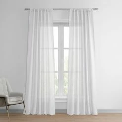 You will instantly fall in love with the Purity Sheer Linen Panel. The refined look of these sheer drapes blends seamlessly with any color scheme or decor, from classic to modern. They create a warm atmosphere with beautiful light diffusion perfect to soften any room while still providing privacy. For proper fullness panels should measure 2-3 times the width of your window/opening. Bring your home design to its fullest and most stylish potential with the Purity Sheer Linen Panels.