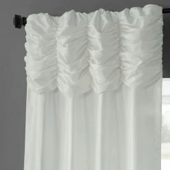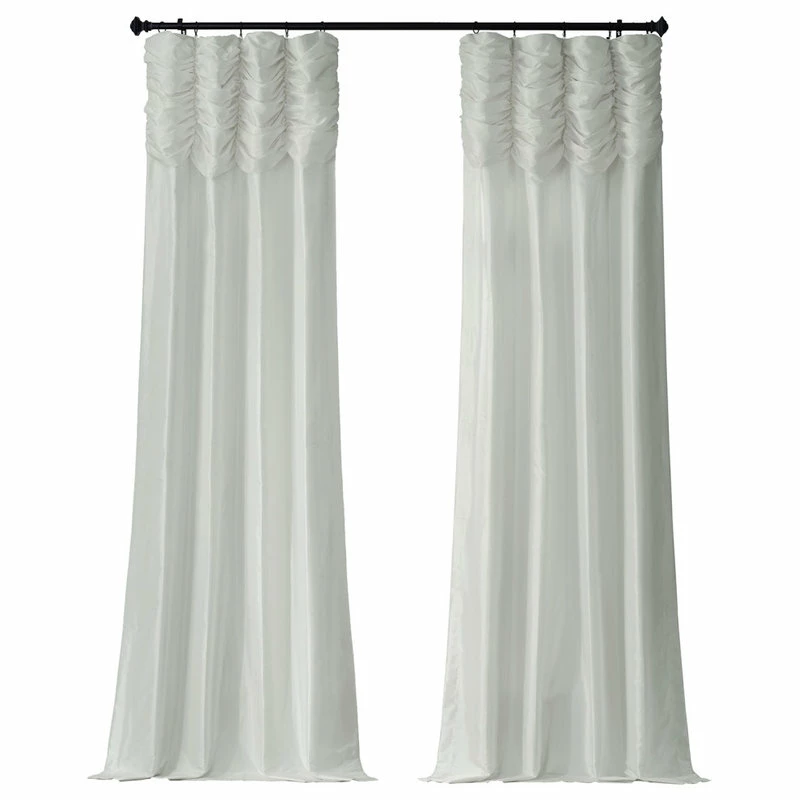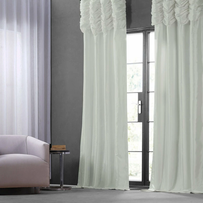 We’ve taken our popular Faux Silk Taffeta panels and added a ruched header valance creating the most luxurious, over the top style in window treatments out there. This style was designed and meant to be stationary and used as decorative panels to frame out your window. As a general rule, for proper fullness panels should measure 2-3 times the width of your window/opening.