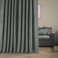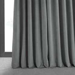 The small Signature Silver Gray Velvet Blackout Curtain is made from 100% poly velvet for excellent durability, easy maintenance, and an irresistibly soft touch. Complete with plush blackout lining, this product blocks out all unwanted light and ensures optimal privacy levels. With its tasteful silver gray tone, this blackout curtain from Exclusive Fabrics & Furnishings, LLC makes a sophisticated yet unpretentious addition to your living space.