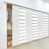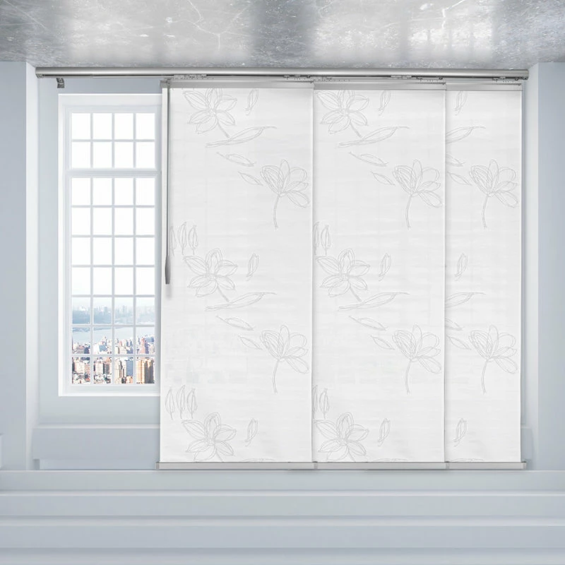 - Single Rail Patented design; 1.25″ thick for a very slick, thin, and compact design. No more bulky rail set ups. Made of steel for a durable and smooth operation of the Panels. Different from your standard panel track in that the sliders are designed in a more compact, overlapping fashion to reduce light bleed coming from in between the Panels.