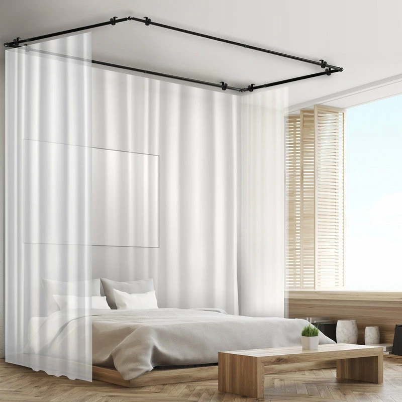 Divide spaces with ease, this multi angle room divider rod can effortlessly decorate and separate a space. Perfect for shared dedrooms, studios, dorms, workspaces, and living room. The corner connector allows for nearly 360 degree rotation to fit into any angles.