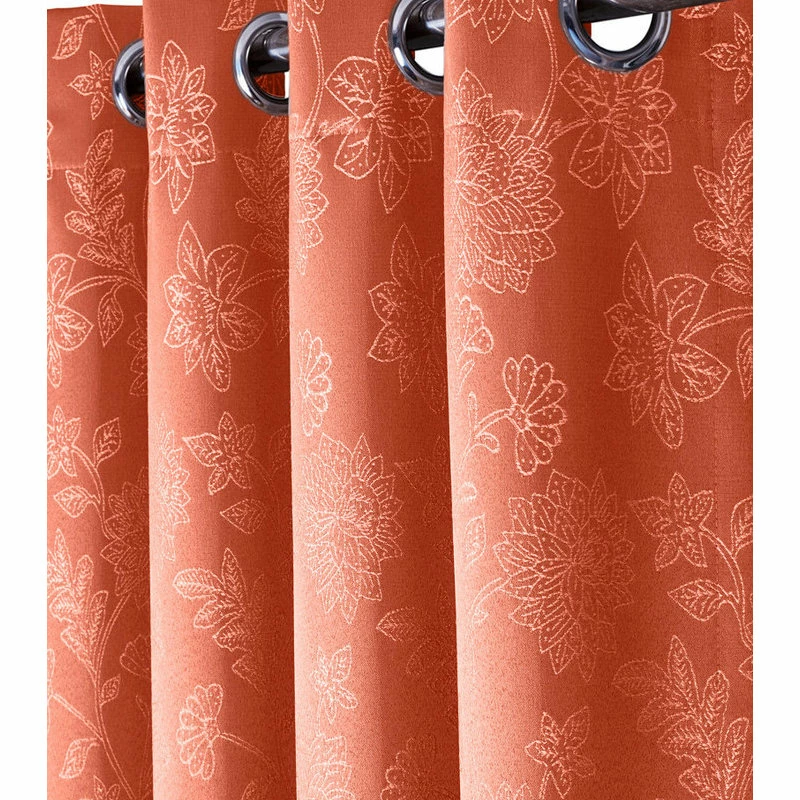 Fannie 100% Blackout curtains were woven in modern Jacquard theme with thermal insulating triple pass back coating to create a total blackout drapes. An Upscale modern design was converted into jacquard woven fabric to bring this theme to life on fabric. To create a total blackout, effect the back side of the fabric went through 3 stages of coating each at different time intervals. This drape can help in reduction of energy costs. It saves on heating and cooling costs by blocking sunlight from entering in summer time and it keeps heat from escaping during winter.