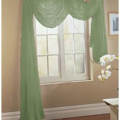 Flash Sale π₯° Sally Textiles Sheer Voile 216″ Long Window Scarf Swag, Sage Green π₯