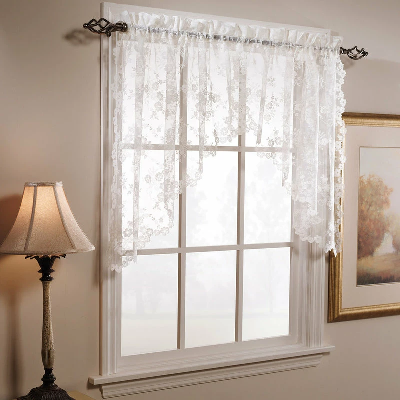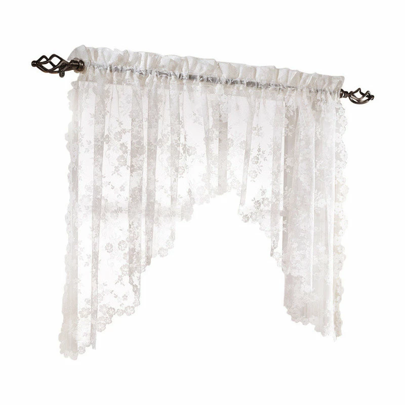 Traditional lace coordinates with fresh flowers adorning all edges. The subtle simplicity of this delicate swag valance adds a touch of romance to your home.
