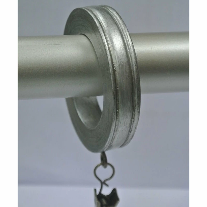 These designer curtain rings have clips to attach to drapery panels and are made of polyresin. The ring has an inner diameter of 1 3/4″and an outer diameter of 2 11/16″. The maximum recommended curtain rod size for this ring is 1 1/2″.