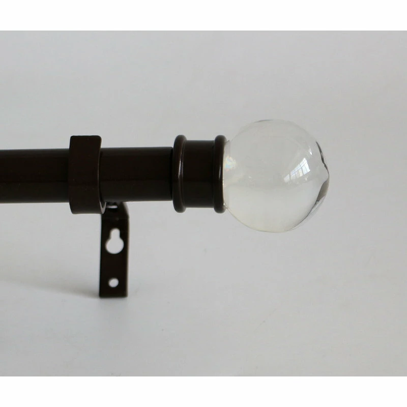 The adjustable curtain rod measures 1″ diameter and comes with round decorative finials. The finials measure 3″ long and 2″ in diameter. The rod extends from 28″ to 48″.