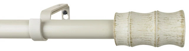 - This rod set includes one rod and brackets in a French white finish, and one set of two finials in a gilded French white finish.