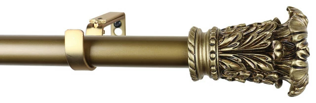- This rod set includes one rod, one set of two finials, and brackets in a renaissance gold finish.