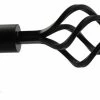 The adjustable curtain rod measures 1″ diameter and comes with polyresin finials. The finials measure 3 1/2″ long and 2 3/4″ across. The rod extends from 48″ to 84″.