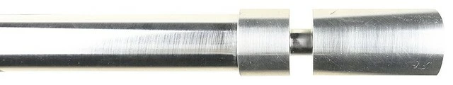 The adjustable curtain rod measures 1″ diameter and comes with metal finials. The finials measures 3 1/4″ long and 1 1/8″ in diameter. The rod extends from 84″ to 120″.