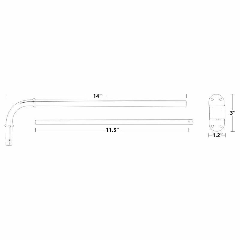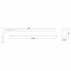- Rod extends from 14″ at the bend to 24″. Diameter of rod is 1/2″. Wall mount span is 2 3/4″.
