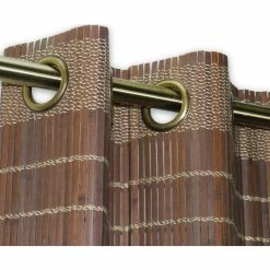 Natural & “Enviro” Bamboo Grommet Top Valance features 1-1/4in diam grommet mounting system. Rust Resistant Antique Brass grommets slide side to side for easy opening without the dangerous cords – pet and child friendly product. The look of Roman shade bamboo material and hangs like a standard curtain panel on a decorative drapery rod (rod not included). Clean with a vacuum or soft brush. This curtain covers 65in in width. This product is meant for Indoor use.